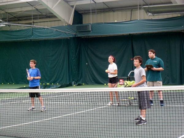 We break the campers into small instructional groups of similar age and ability so each child is working in a group that is commensurate with their experience level. We tailor each program to the level of the players. Beginners would get a heavier dose of swing technique and fundamentals, while more advanced players would have more focus on strategy, point building and percent-age tennis etc.