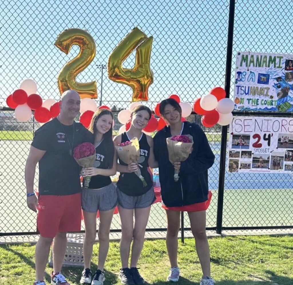 Syosset completed its undefeated regular season as Ava Weinstock & Taylor Brecher won 6-4, 4-6, 7-5 at second doubles on Senior Day.