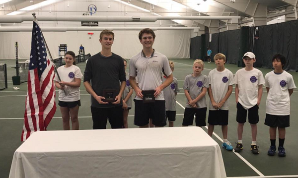 Cannon Kingsley of Christopher Morley Tennis captured the title at the USTA Boys’ 18 National Indoor Championships in Overland Park, Kansas. Seeded 14th, Kingsley (pictured here, second from left) did not drop a set all tournament long, and beat third-seeded Carson Haskins 6-3, 6-0 in the finals.