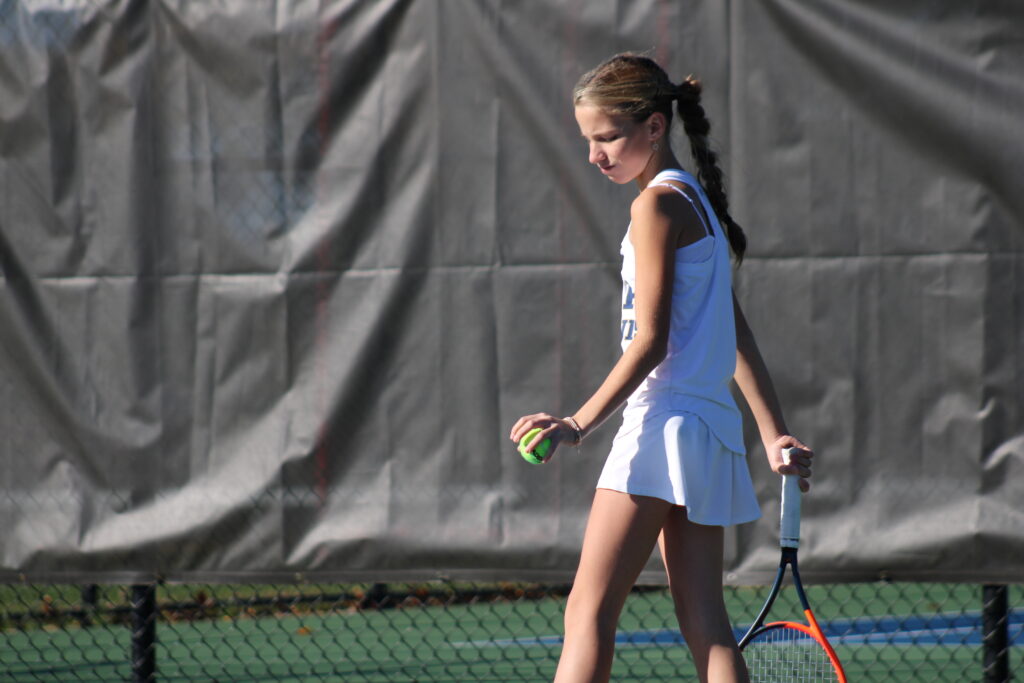“I tried not to pay attention to what was going on around me, and didn’t know the scores of the other matches,” Romano said. “I didn’t want to lose for our team, especially the seniors. I tried to play more consistently, and knew that smacking the ball wasn’t going to get me anywhere. If I played more consistently, then it would give me a better chance to win.”