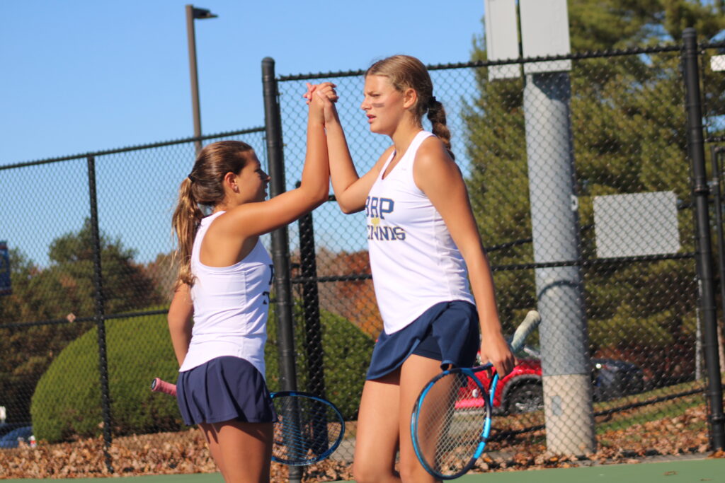 With two courts remaining, Bayport-Blue Point needed to rely on the third doubles team, the eighth-grade duo of Leila Rogers & Jordana Heller, and sophomore Lily Castka at second singles.