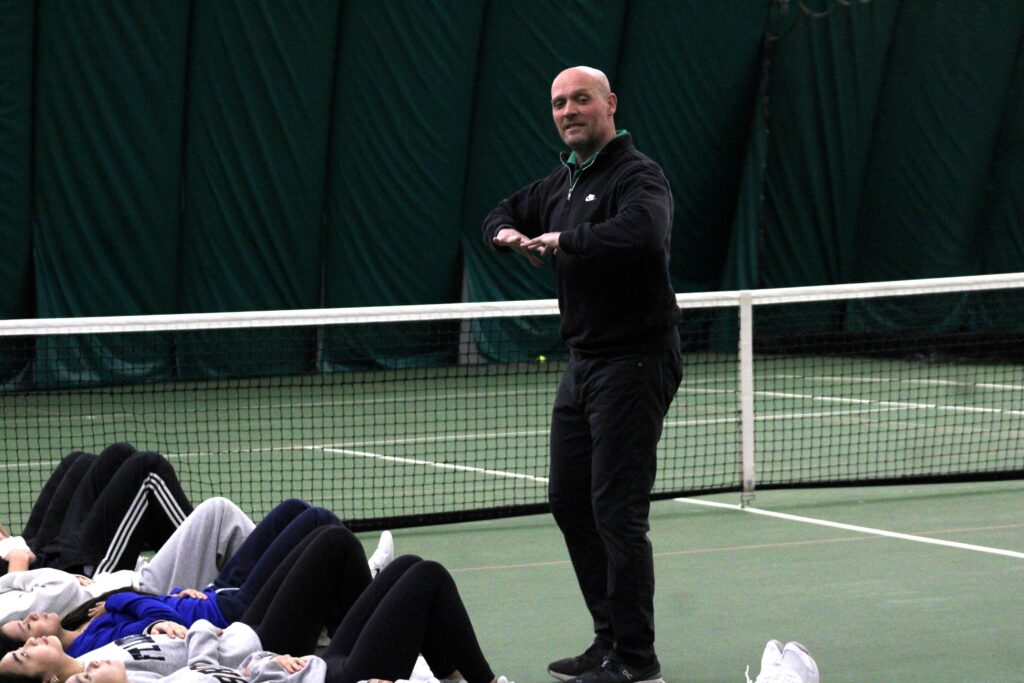 “A lot of high school tennis programs get out there and just start hitting. But what we wanted to emphasize is having an understanding of not just warming up to get a sweat going or get loose, but it’s also to change athleticism and improve movements if done the right way,” explained Dolan. “What we discussed was doing things with intent, going through the full range of motions, thinking of keeping things in alignment, the right posture, and all those little details that help you avoid just going through the motions. I think I was able to provide something simple that the coaches can quickly take with them and apply it to their teams right away.”