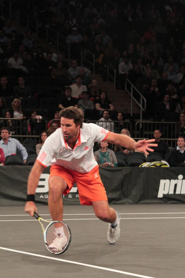 The night started with a battle of two Hall of Famers, as Ivan Lendl faced Mats Wilander. Lendl (now 43-years-old) was returning to match play for the first time since 1994. The rust showed a bit, as Lendl had trouble keeping up with the defensive play of Wilander, whose starategy seemed to be to wear down Lendl.