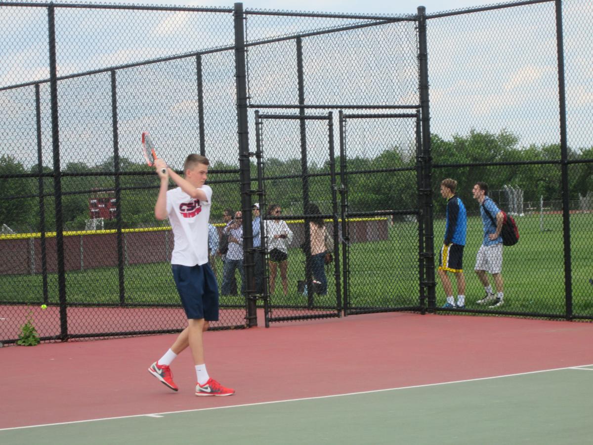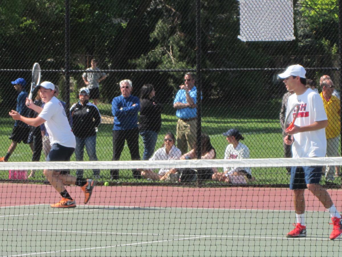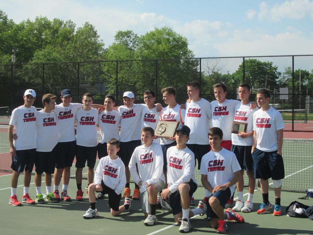 In second doubles, Syosset's Nikhil Raj & Spencer Lowitt beat A.J Arena & Nick Stamatos 6-1, 6-7, 6-2. In fourth doubles, Chad Kagan & Adam Canarick of the Braves defeated CSH's Eli Reid & Chase Delancourt 6-1, 6-3.