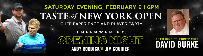 After the New York Tennis Expo, join Roddick and Courier as the two face off in a culinary competition before stepping onto the court for their match. The Taste of New York Open will see Roddick and Courier put their cooking skills to the test in an Iron Chef-like competition as Chef David Burke, a two-time James Beard Foundation winner as “Best Chef in New York”, shows off his culinary skills and creates a VIP culinary experience that will carry on throughout the week of the tournament.