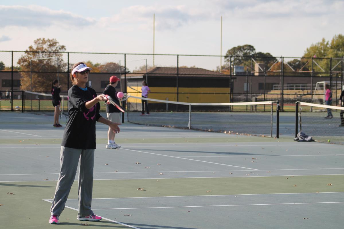 The Commack Varsity girls’ tennis team hosted its annual Play for Pink Tennis with Teachers event on Tuesday afternoon at Commack High School, bringing together the team’s tennis players with the school’s teachers, for a fun afternoon of tennis while also raising money for the Play for the P.I.N.K Breast Cancer Research Fund.