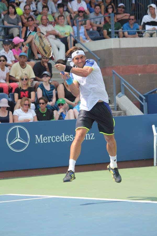 David Ferrer advanced to the U.S. Open quarterfinals Monday after his 7-6, 3-6, 7-5, 7-6 win over Janko Tipsarevic