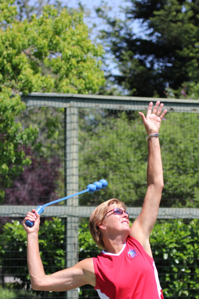 â–ºThe toss shoulder finishes under the chin and finger tips stretched to the sky.