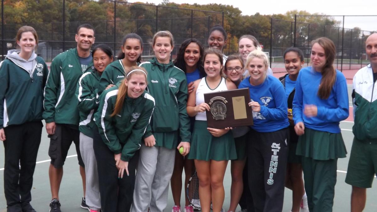 William Floyd High School Girls Tennis pulled off a huge upset to beat the three time defending Suffolk County Champions Half Hollow Hills East 4-3 in the Suffolk County Championship Match. The win snapped Hills East's 69 consecutive Suffolk County match winning streak and also avenged Floyd's loss to Hills East in last year’s Suffolk final, as well as a regular season loss earlier this year.