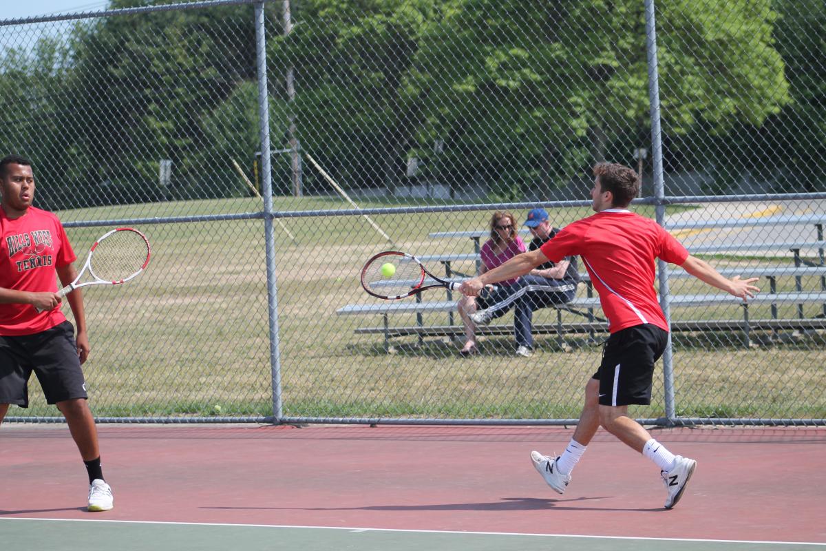 Duane Davis beat Hills East’s Ross Reiffman 6-2, 6-4 to give the Colts the advantage. Soon after, Dylan Davis & Nierman followed suit, coming back from a set down to beat Hills East’s Brian Rhee & Sahil Varma 3-6, 6-0, 6-2.