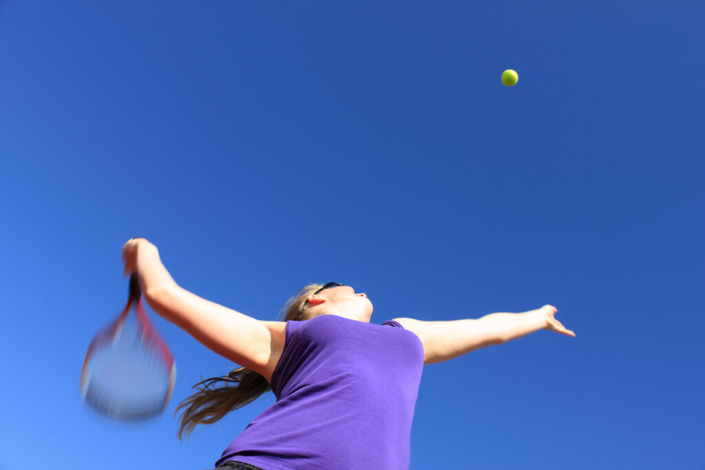 My mechanics were pretty basic for both my left- and right-handed serves. I worked on a consistent starting point, where my racquet met with the ball in front of my body while standing fairly upright. Then, my focus was to bring both arms up at the same time. The great Pete Sampras would stagger his arms with the racquet arm dragging a little slower and longer to develop more of a whipping action through the contact point. For me, as soon as the toss paused at arm and racquet reach, it was time to throw as much torque into the ball.