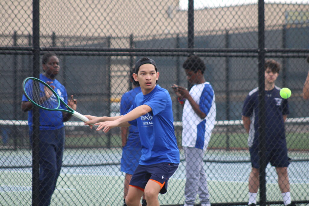 Brien Anthony Degoma held on to win 6-4, 3-6, 6-2 at first singles to lead Valley Stream Central.