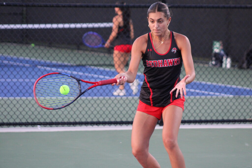 Kate Holland posted a 6-3, 6-1 win at second singles for the Red Hawks.Â