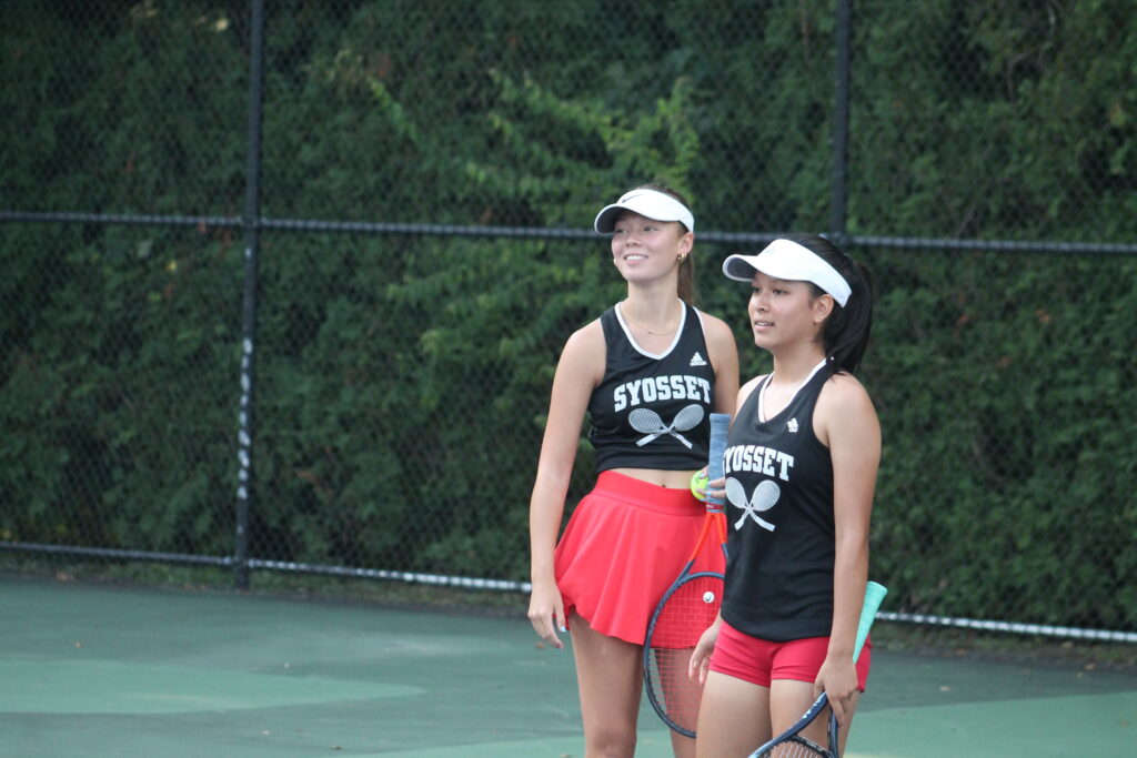 Diya Varma and Julia Isham held on to win 6-3, 5-7, [10-4] at second doubles to lead Syosset.