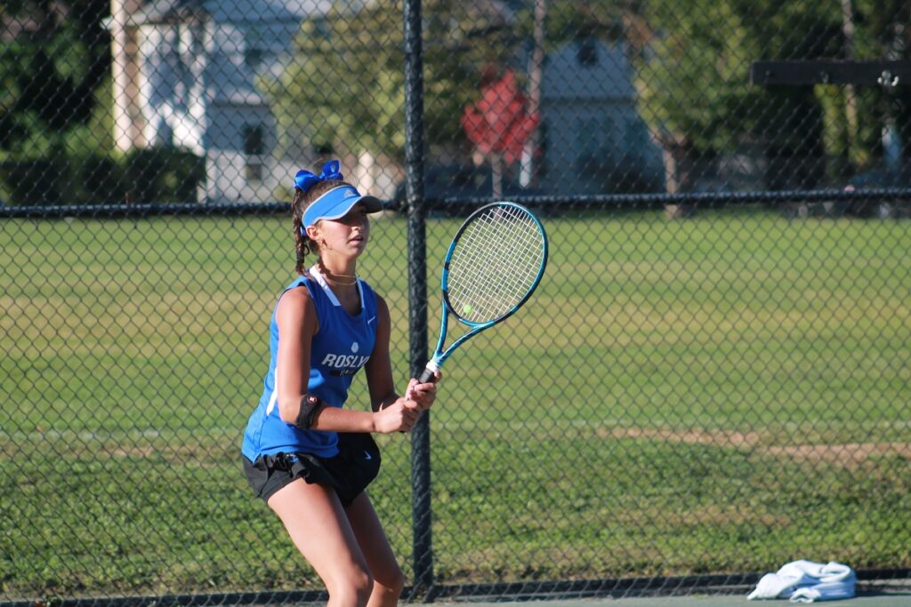 At second doubles, Mia Bloom & Ryann Rappaport came back to win 4-6, 6-2, 6-2 to lead Roslyn.