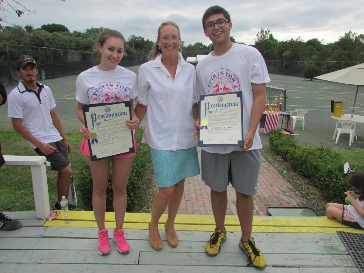 Michael Schumer and Michele Lehat, two 17-year-olds from Long Island, hosted the Third Annual Points for Patriots Charity Tennis Tournament in early August, a round-robin doubles tournament that took place at Le Club Tennis in Westhampton Beach, N.Y.