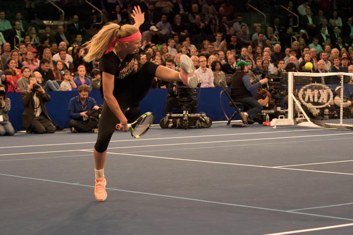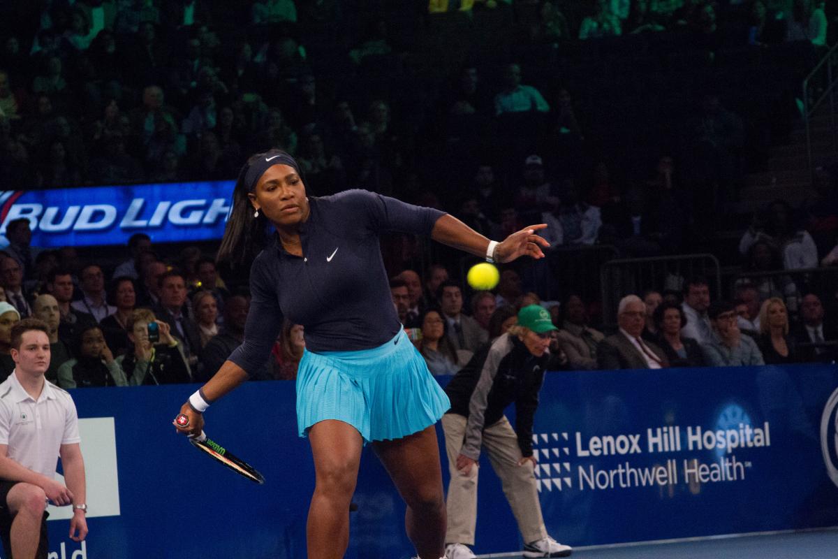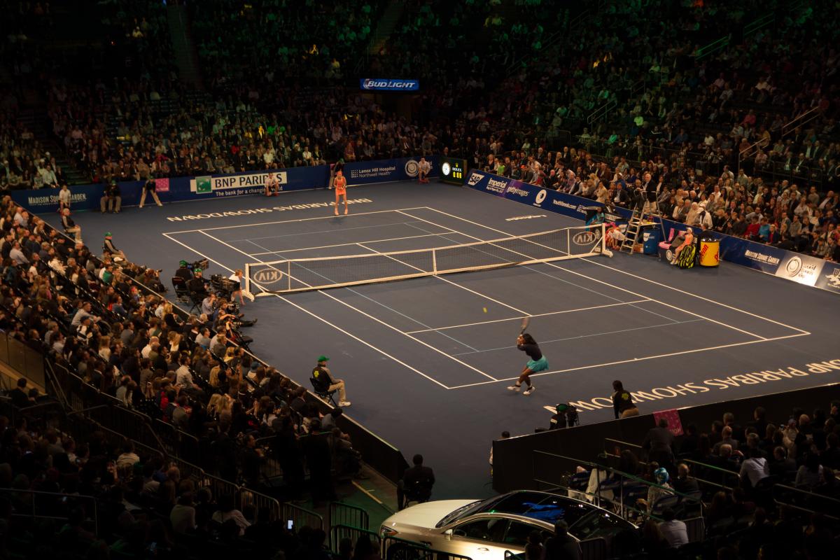 Four of the world’s top tennis players descended on New York City Tuesday night for the annual BNP Paribas Showdown at Madison Square Garden, as Stan Wawrinka took on Gael Monfils and Serena Williams battled Caroline Wozniacki in two exhibition matches.
