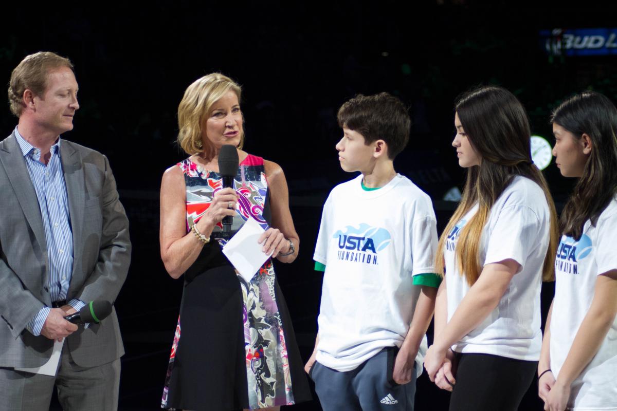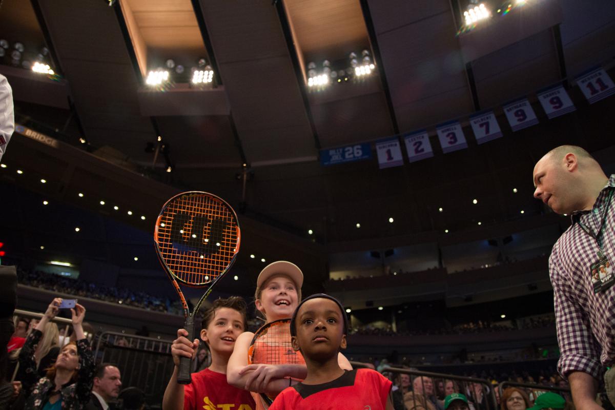 Monfils would take the first set in a tie-breaker, and midway through the second set, Serena and Wozniacki came out to play a little mixed-doubles, Serena with Wawrinka and Wozniacki with Monfils. The stars showed their volleying skills at the net and even Wozniacki tried her hand at a tweener much to the delight of the Garden crowd.