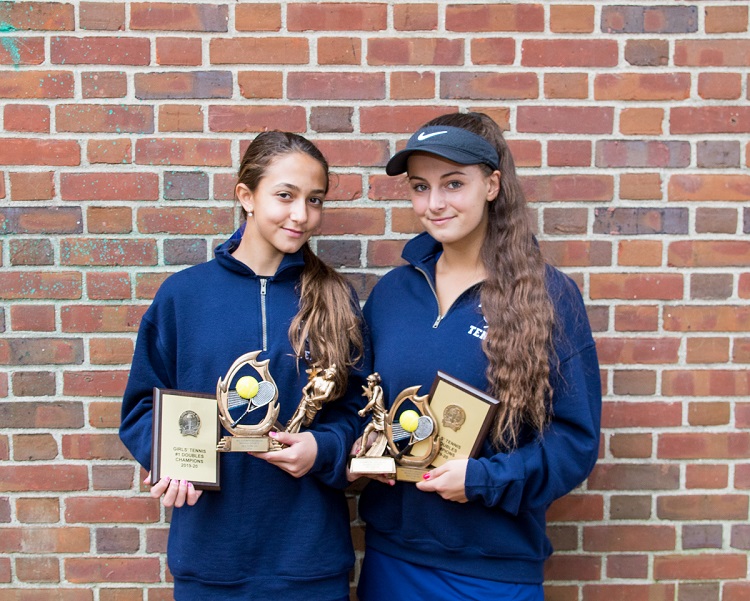 Nyla Gershfeld (left) and Rachel Arbitman (right) after winning the 2019 Nassau County Doubles title. The duo would go on to win the New York State doubles title later that year.