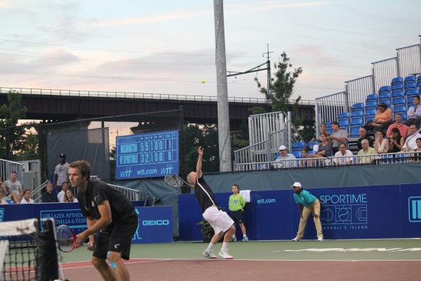 After the conclusion of women’s doubles, the men’s doubles match featured Treat Huey & Bobby Reynolds of the Kastles facing Robert Kendrick & John McEnroe of the Sportimes. McEnroe had a very hard time returning the explosive serves of both Huey and Reynolds. The firepower of the Kastles overmatched the Sportime duo, resulting in a 5-3 win for the Kastles.