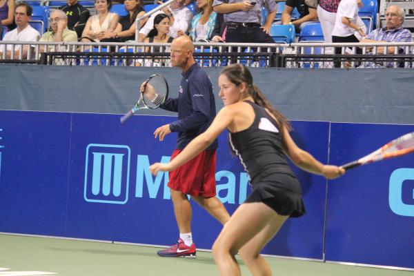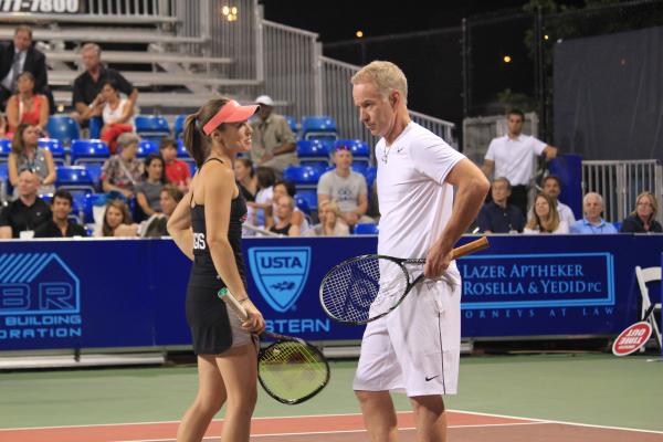 The New York Sportimes took the court for their final home match of the season Wednesday night, July 25, hosting the undefeated Washington Kastles at Randall’s Island where legends John McEnroe and Martina Hingis participated in the night’s events. With close to a full crowd that came out to support the home team one last time, there was a nice energy inside the stadium.