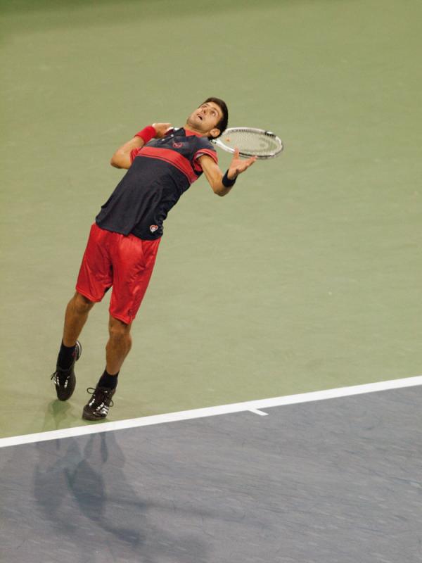 The number three seed Novak Djokovic from Serbia defeated American James Blake under the lights at Arthur Ashe Stadium, 6-1, 7-6(4), 6-3 on Saturday night