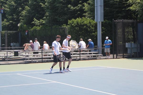 The match for fourth place saw the Nassau County Champions Conor Mullins & Jonathan Paris of Cold Spring Harbor facing the Suffolk County Champions from Half Hollow Hills East, Jeff Cherkin & Kyle Alper. Cherkin & Alper had already dismissed the second-seeded Nassau team of Addison Berniker & Henry Tell of Syosset in the first round. It was a hard fought match with great influence from the crowd, as both teams schools had a strong presence at the tournament. Mullins & Paris were able to pull out the match with a 6-3, 6-2 victory to secure fourth place and a spot on the All-State team.Brooklyn Tech’s Cole Gittens & William Trang came up against the eventual third place finishers Dylan Brittis-Tannenbaum & Nick Simon of Fox Lane in the second round, taking them to three sets, 4-6, 7-5, 3-6.