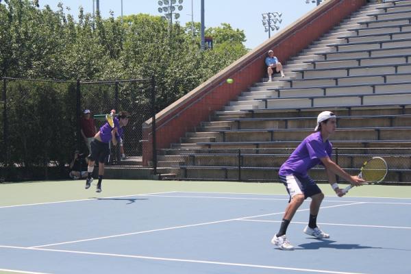 Maxwell Smith & Lucas Pickering from Beacon High School in their Championship Doubles Match against Matt & Colin Nardella from Christian Brothers Academy (photo credit Adam Wolfthal)