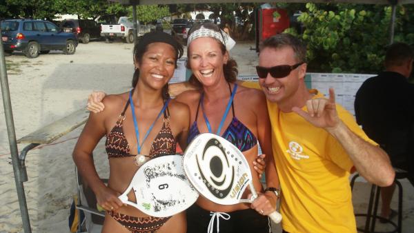 The tournament started with a junior event from 9:00 a.m.-11:00 a.m., and then the rest of the tournament was played until 6:00 p.m. In between matches, players enjoyed the entertainment, food and swam in the ocean. What a great way to spend the day!