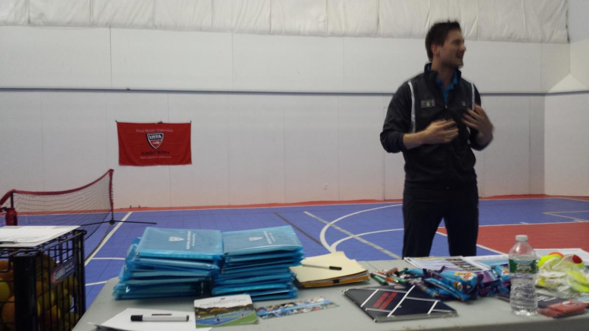 Sportime Kings Pak's  Director of Tennis Jeff Morys introduced himself to the group offering training information and Sportime's support of high school tennis. USTA  Tennis Service Representative Bill Mecca also attended and held a discussion about USTA resources that are readily available to tennis coaches and school tennis programs.