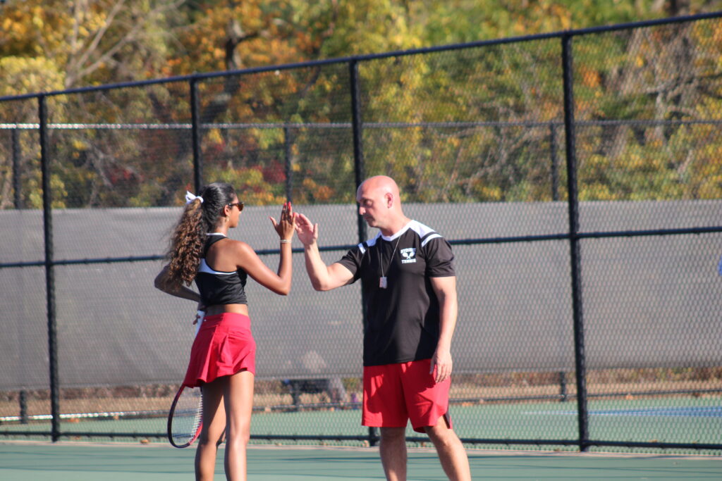 “We’ve all been working so hard, and we really wanted this for our team, not just for ourselves,” said senior co-captain Sanam Mehta. “We put in the work during practice, and are playing against each other constantly which makes everyone better. Doubles always does a great job of stepping up, and we wanted to do the same.”