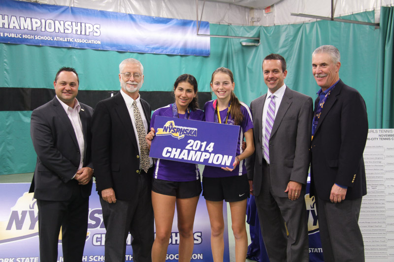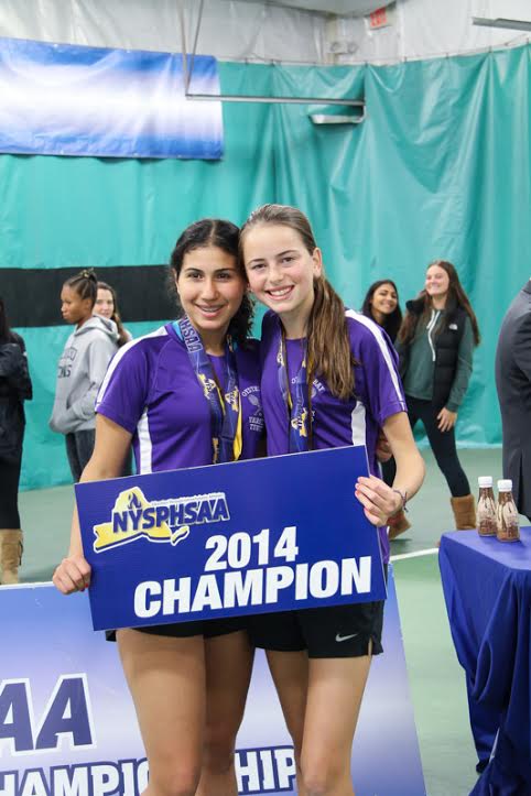 Courtney Kowalsky and Celeste Matute became the first girls tennis players from Oyster Bay, N.Y. to win a state championship in early November, defeating the top-seeded Suffern High School pair Sydney Kaplan & Courtney Ollis 6-4, 6-4 in the state finals in Latham, N.Y.