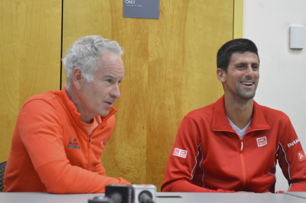 John McEnroe and Novak Djokovic field questions during the pre-match press conference