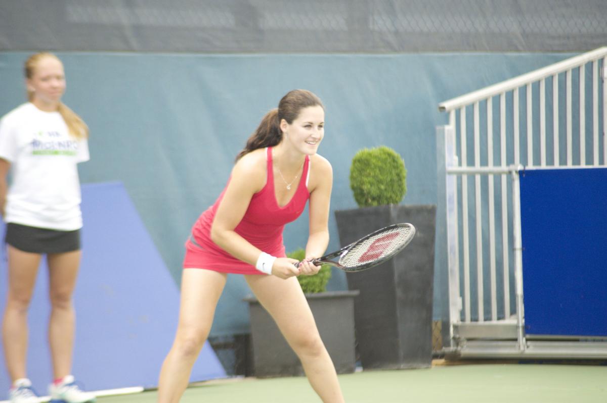 University of North Carolina and JMTA’s own Jamie Loeb takes on Lucie Safarova during an exhibition at Sportime Randall's Island