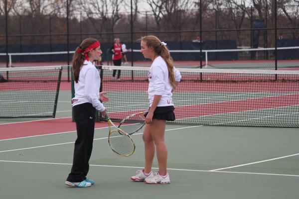 Syosset’s first doubles team of Joelle Porush & Paige Gindi discuss strategy