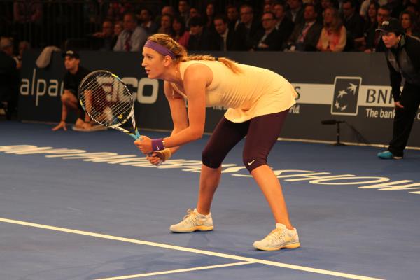 World number two-ranked Victoria Azarenka awaits Serena’s serve