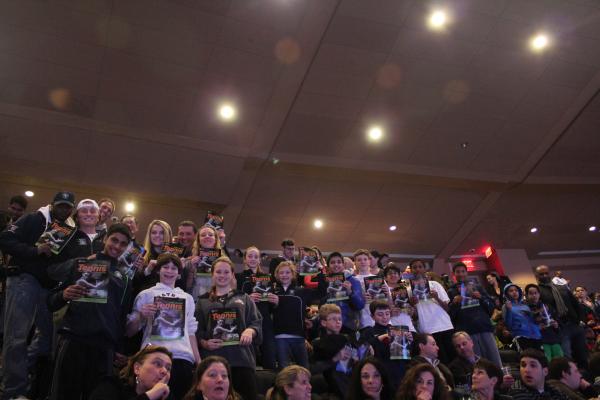 Tim Mayotte (right) of 360Tennis and some of the juniors from his program enjoying the latest issue of Long Island Tennis Magazine at MSG