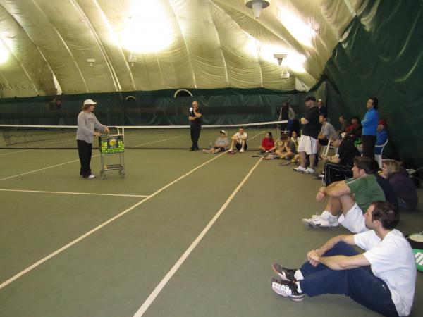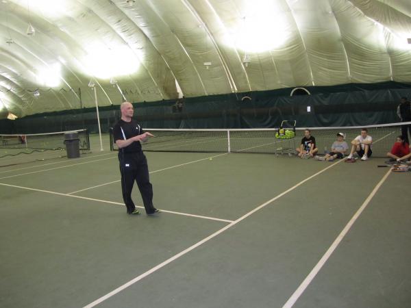 On Sunday afternoon March 11, high school tennis coaches and players took part in the Annual Long Island Scholastic Coaches Conference and Clinic at Bethpage Park Tennis Center. The clinic, run by Bethpage Park Tennis Directors Steve Kaplan and Keith Kambourian, taught coaches how to incorporate different exercises and drills into their routine to help their players with conditioning and agility. Frank Dolan, owner of All 4 Sports and Fitness in West Islip, and trainer with the New York Yankees, was on hand to offer tips on how to better stabilize one’s body on the court and get the most out of preparatory exercises. It was the fourth year of the clinic, which brought together coaches from both Suffolk and Nassau County.
