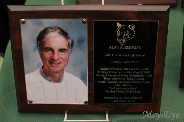 Also inducted into the Bellmore JFK Hall of Fame was former boys and girls tennis coach Alan Fleischman. Alan retired in 2002 after being a faculty member for 33 years. Alan coached both the girls and boys tennis teams to much success and made a lasting impression on his players. He is well respected and a friend to many of his former players and is a regular contributor to Long Island Tennis Magazine.