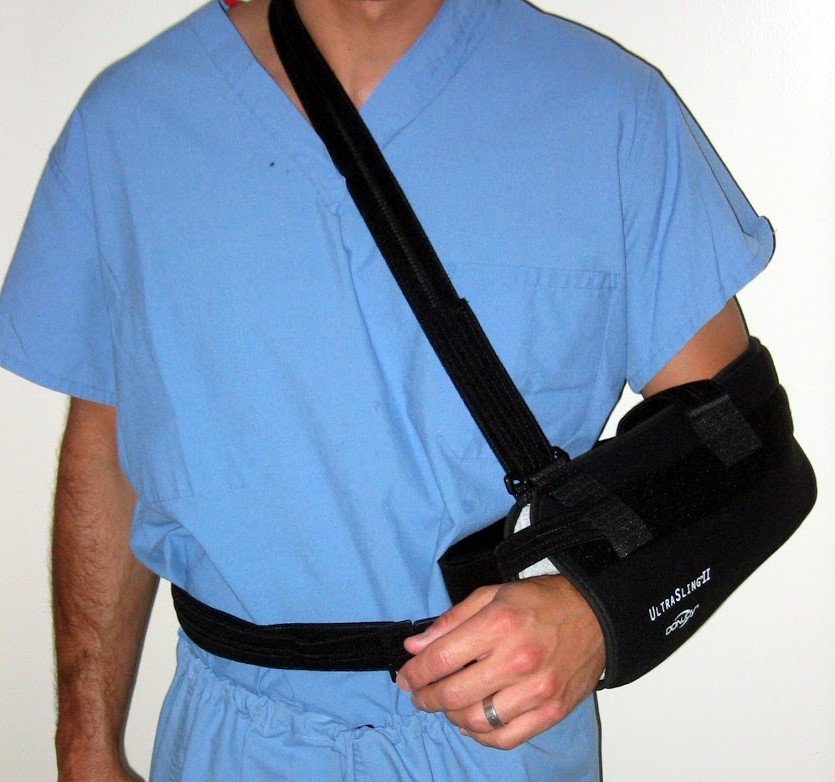 Patients usually go home the same day, often in a sling (see below). Recovery after rotator cuff surgery is gradual. Several months of physical therapy will be required for a proper recovery. Activity restrictions will apply after surgery until appropriate rehabilitation goals have been achieved. Eventually, return to sports will be permitted.