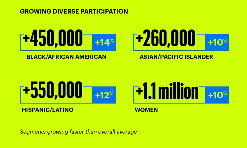More players entered and stayed in the game; Women and communities of color drove growth; unprecedented intent to play signals strong demand for future growth