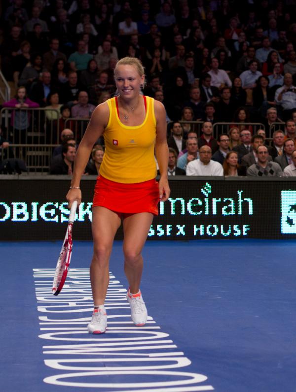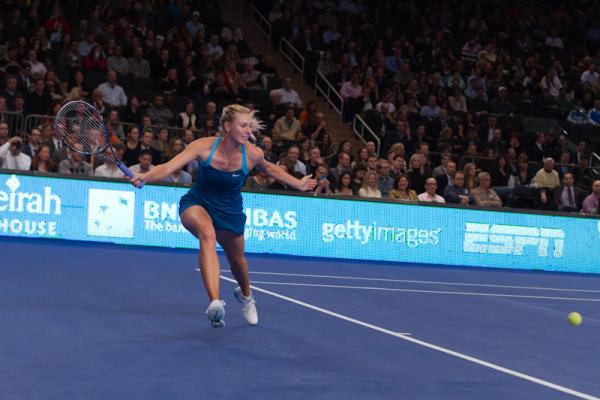 Former world number one-ranked Caroline Wozniacki in her match against Maria Sharapova at MSG