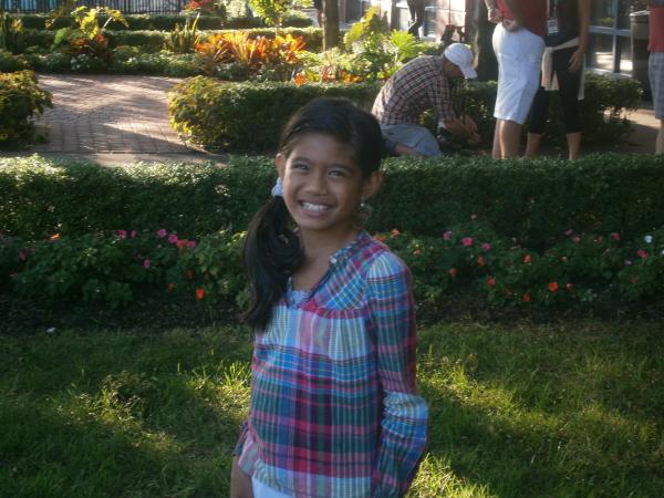 Nine-year-old Frenie Acoba sand during the nightcap under the lights at her second U.S. Open