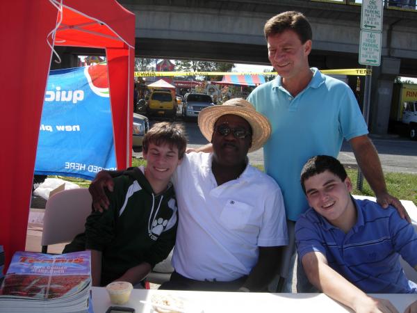 USTA/Eastern-LI Region President Daniel Burgess (left) gets ready for the Fair with 15-year-olds Ross Binder (center) and Jared Zeitlin (right) both of Merrick, N.Y.