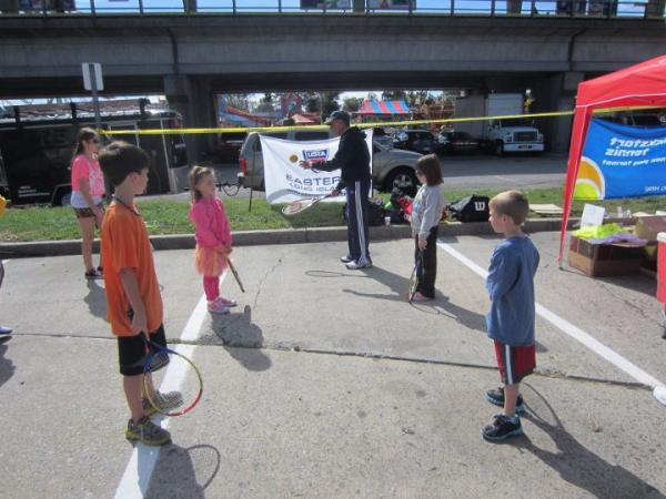 The USTA/Eastern-LI Region took its talents outdoors at the 25th Annual Bellmore Family Festival, where the region made it first appearance with a special 10 & Under court set up in the fair’s Sports Expo area. QuickStart courts were the place to be during the Festival, as hundreds of kids took their turns trying out tennis the QuickStart way. Tennis pros from across Nassau and Suffolk Counties volunteered their time and equipment to make the day a success.